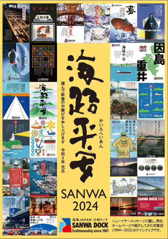 三和ドックの年賀状のテーマは「海路平安」です。新しい年を迎えるにふさわしい三和ドックならではのニューイヤーメッセージをお楽しみください。シリーズの因島みどころ案内も好評です。
