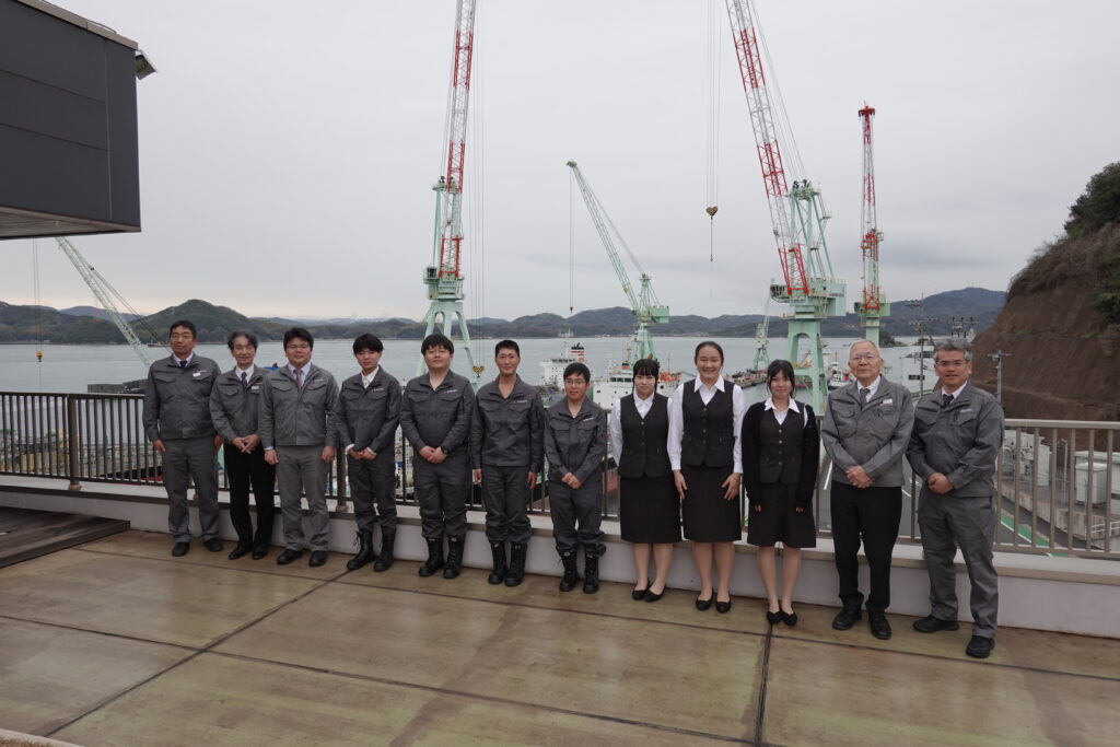 新入社員は今後、因島島内の因島技術センターにて初任者研修を受講、総合職は1か月、技術職は3か月にわたり熟練技術者からの技術指導を受け、各種必要資格を取得した後、各配属先に着任する予定です。